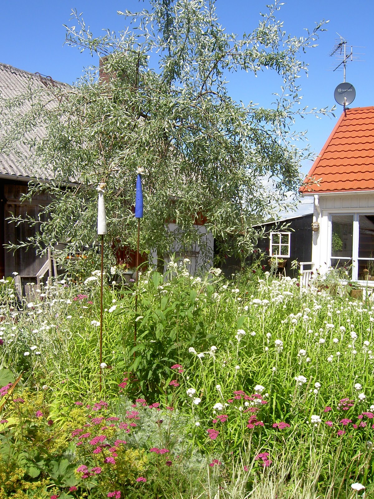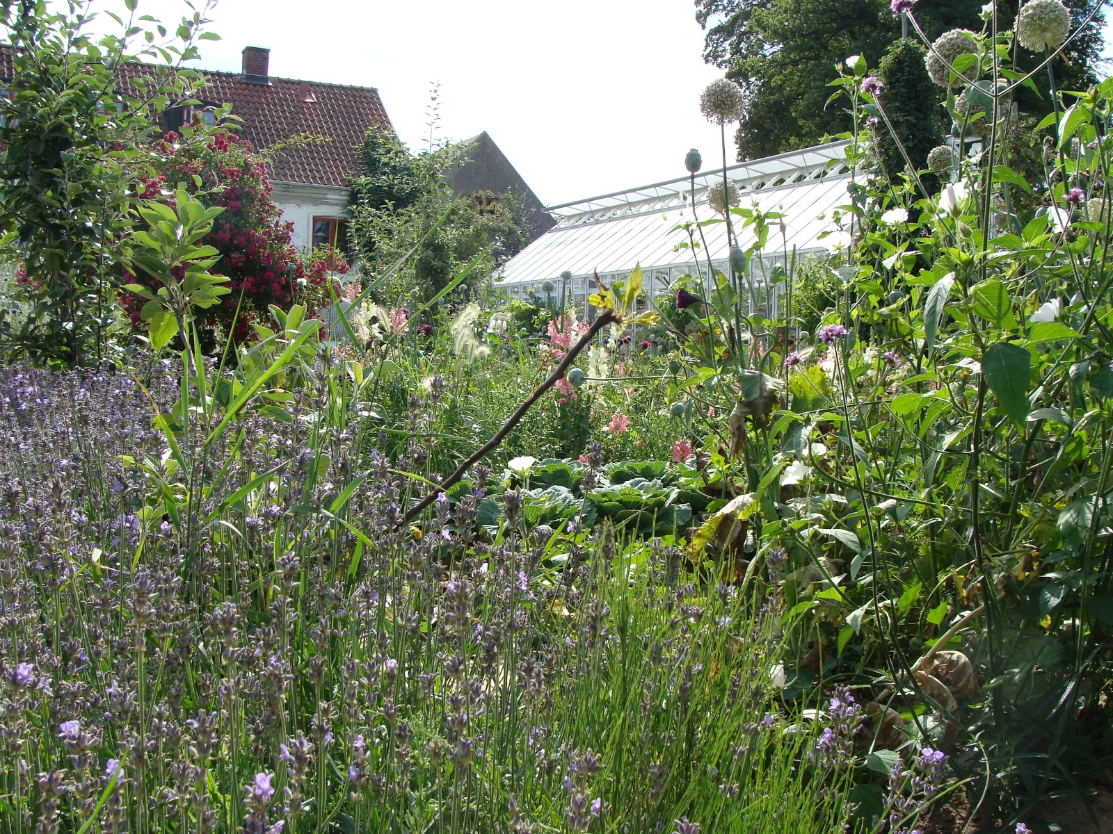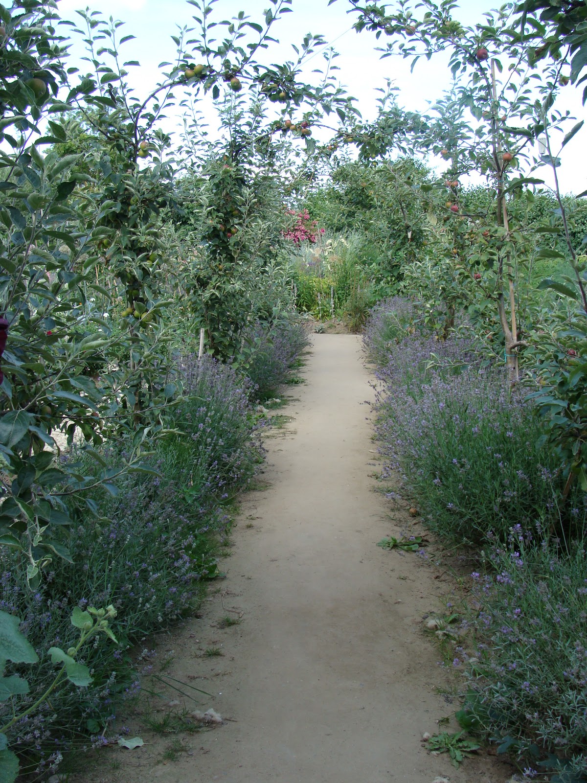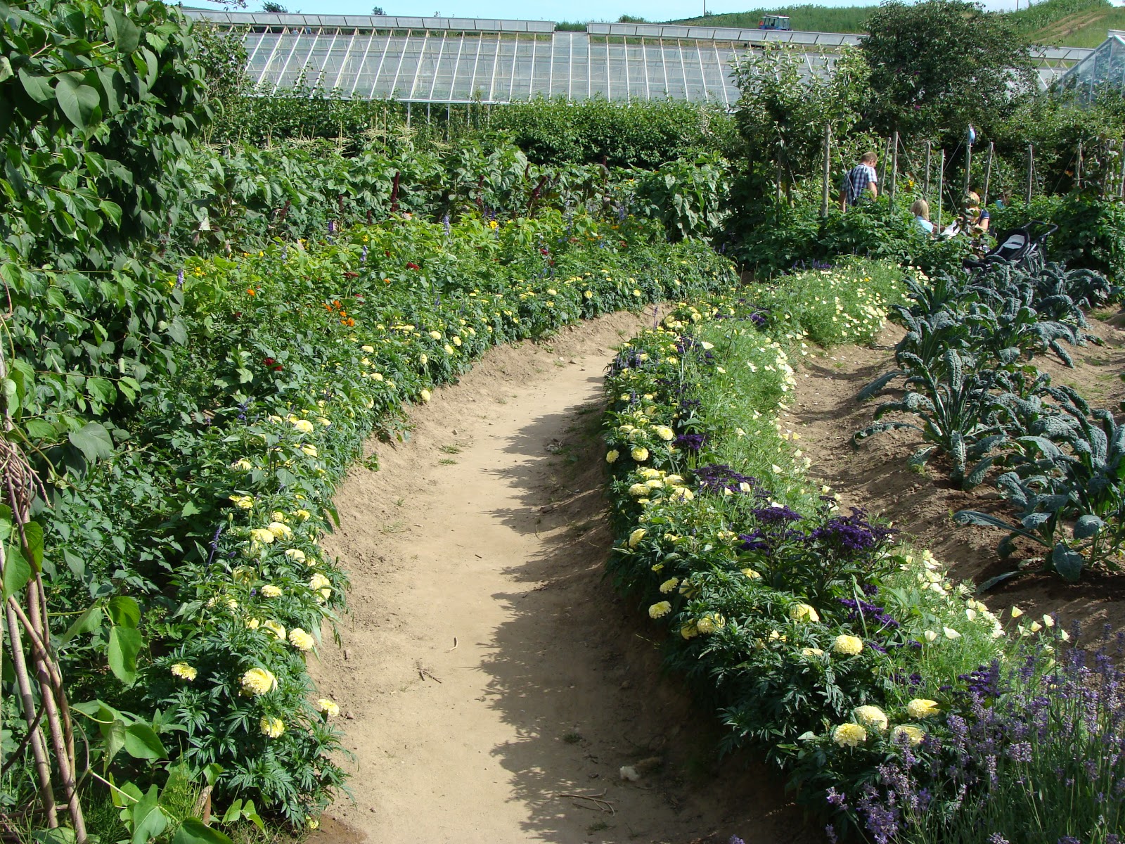 Besöker man trädgården för första gången slås man av mångfalden och den prunkande växtligheten. Träd och buskar står inte så linjalräta som de brukar göra i mer konventionella odlingar. Gården är på 60 hektar med åker, fårbete, lite skog och ett par hektar frukt och grönsaker.