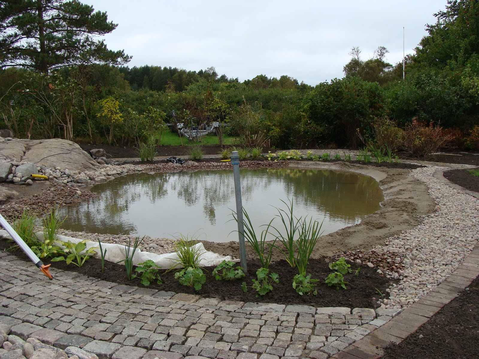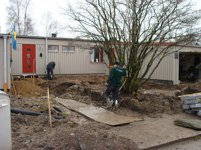 Just anläggs en trädgård i Lindome som Kungsbacka Trädgårdsdesign ritat.